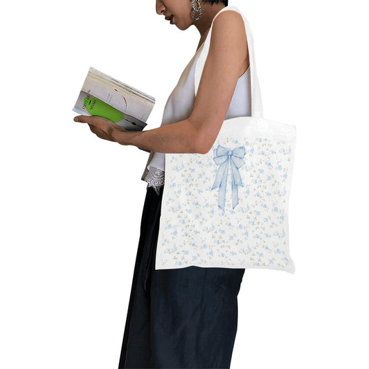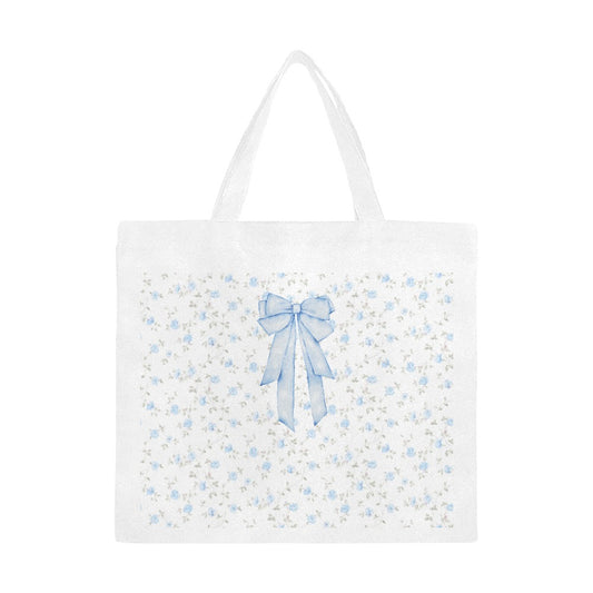 Blue Bow Floral Print Large Tote