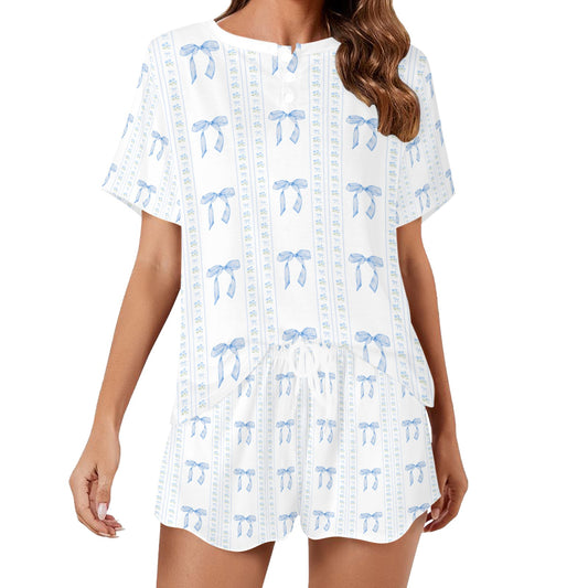 Blue Bow Print Lounge Set